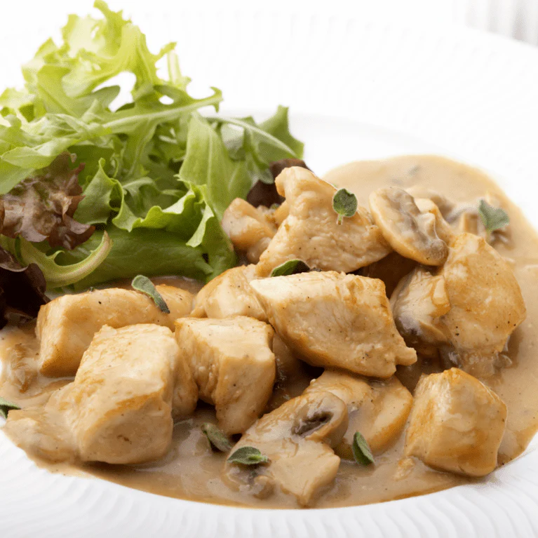Creamy Chicken & Mushroom Fricassee with only 0.8g carbs per portion. Keto‑friendly, rich, and ready in minutes. A perfect low‑carb dinner option.